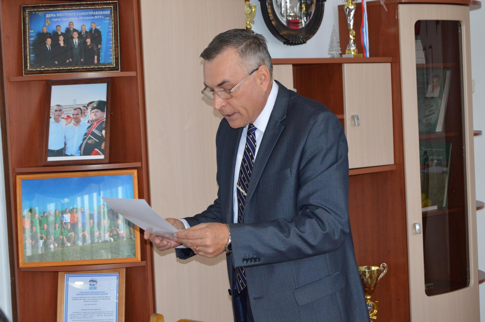 Сегодня глава района Сергей Цирульник, в рамках празднования Дня избирательной системы Краснодарского края, провёл торжественный прием членов территориальной избирательной комиссии Щербиновская и председателей участковых избирательных комиссий. Сергей Юрьевич поблагодарив всех присутствующих за проделанную работу на прошедших избирательных кампаниях, за четкое соблюдение избирательного законодательства, высокий профессионализм и выдержку при организации и проведении выборов.Также, участников мероприятия приветствовали заместитель главы Ольга Лунева, председатель территориальной избирательной комиссии Щербиновская Юлия Галкина. За успешную работу по подготовке и проведению выборов различного уровня глава района вручил присутствующим благодарности главы муниципального образования Щербиновский район. По итогам краевого конкурса на лучшее оформление избирательного участка, имеющего статус именного, дипломом и памятным сувениром награждена участковая избирательная комиссия избирательного участка № 57-13 имени Нины Андреевны Ампилоговой.