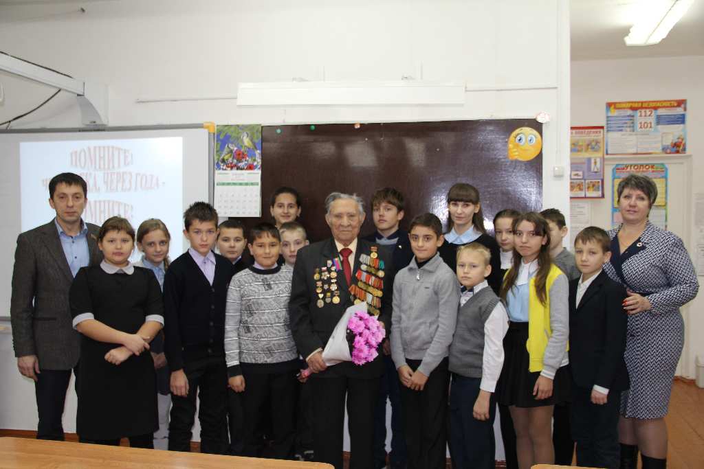 В МБОУ СОШ № 5 учащиеся 6 класса с классным руководителем подготовили открытый «Урок мужества», на который были приглашены почетные гости: ветеран Великой Отечественной Войны – Пешков Михаил Ефимович, и депутат Законодательного Собрания Краснодарского края Хараман Александр Юрьевич. Учащие вместе с гостями окунулись в историю празднования дня героев отечества, вспомнили «Героев отечества», рассказали о важности данного дня и о том, как важно знать и помнить своих героев. По завершению открытого урока Пешков Михаил Ефимович рассказал ребятам о самых важных днях в его жизни.