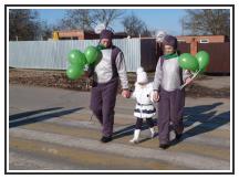 Необычный способ борьбы за безопасность дорожного движения придумали в Щербиновском районе. В рамках профилактических мероприятий «Внимание – дети!», «Ребенок главный пассажир» совместная акция ГИБДД и общественного объединения правоохранительной направленности «Молодежный патруль» длилась 3 дня. На пешеходные переходы вышли ростовые куклы в виде героев мультиков, которые знакомят проходящих мимо детей с правилами поведения на улицах станицы, задают детям вопросы по Правилам дорожного движения и за правильные ответы вручают зеленый воздушный шар-как символ жизни. Также проводят беседы с водителями о безопасной перевозке детей автотранспортом.