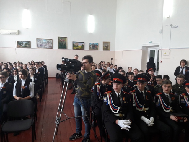 Директор учреждения Светлана Середа, открывая урок, отметила, что педагогами уделяется большое внимание формированию патриотического мировоззрения учеников, организовано соревнование на параллелях, лучшим классам вручается вымпел «Класс, достойный имени Героя». С 2000 года в школе существует кадетское движение. Уже почти 200 выпускников кадетских класов связали свою жизнь с военной службой.