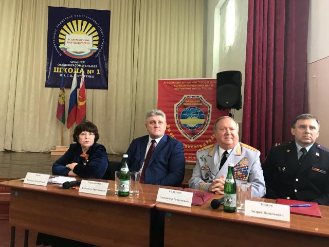 На вопрос о том, кто такой патриот в наши дни, вместе со школьниками отвечали гости - депутат Госдумы Наталья Боева, глава Каневского района Александр Герасименко, председатель Общероссийской общественной организации «Ассоциация работников правоохранительных органов и спецслужб Российской Федерации» Александр Сапрунов, председатель районной организации ветеранов боевых действий ОВД и ВВ России Георгий Бойко, начальник Отдела МВД России по Каневскому району полковник полиции Андрей Будков.