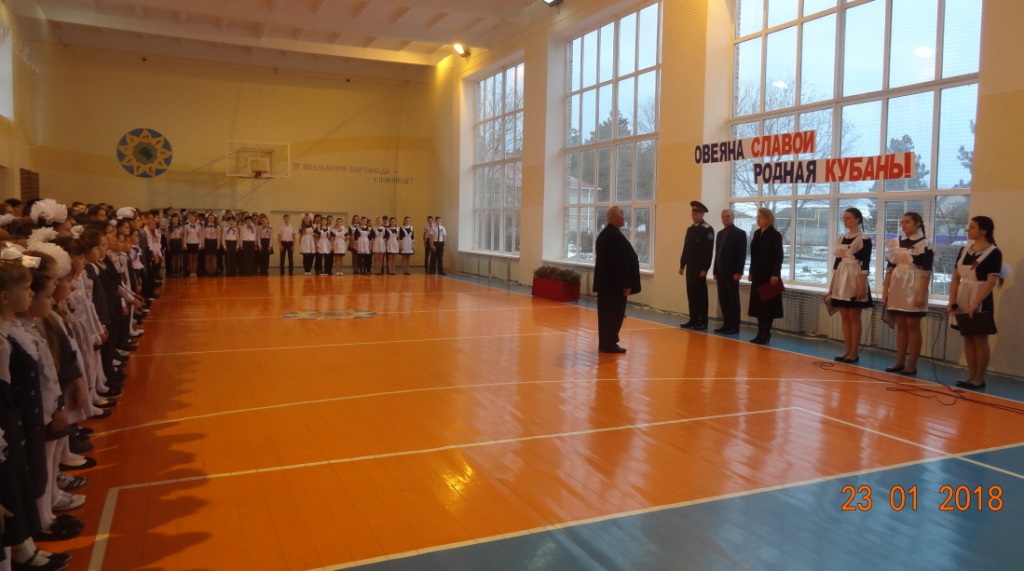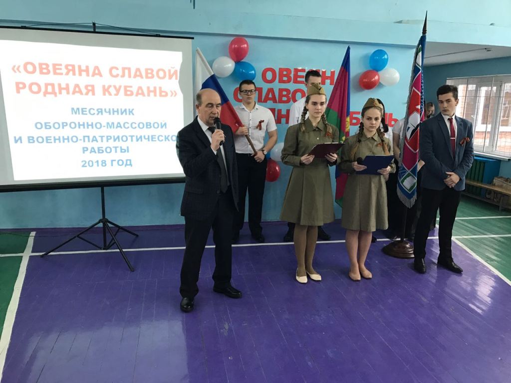 23 января во всех общеобразовательных учреждениях Щербиновского района прошли торжественные линейки, посвященные открытию месячника оборонно-массовой и военно-патриотической работы под девизом «Овеяна славой родная Кубань!».