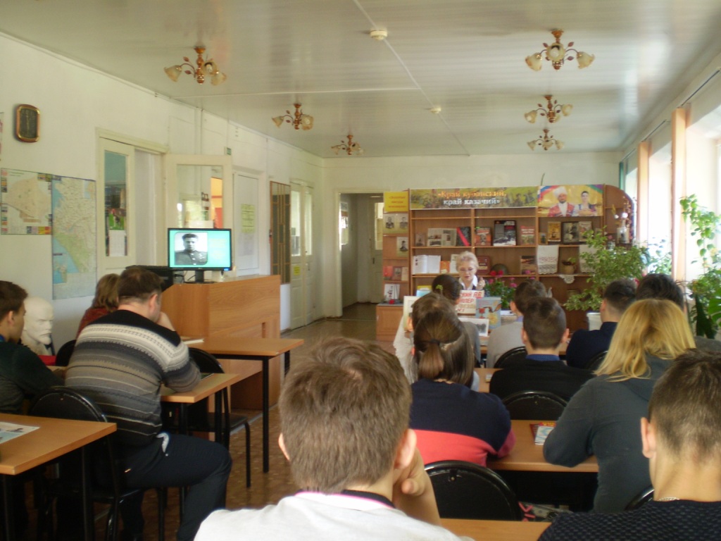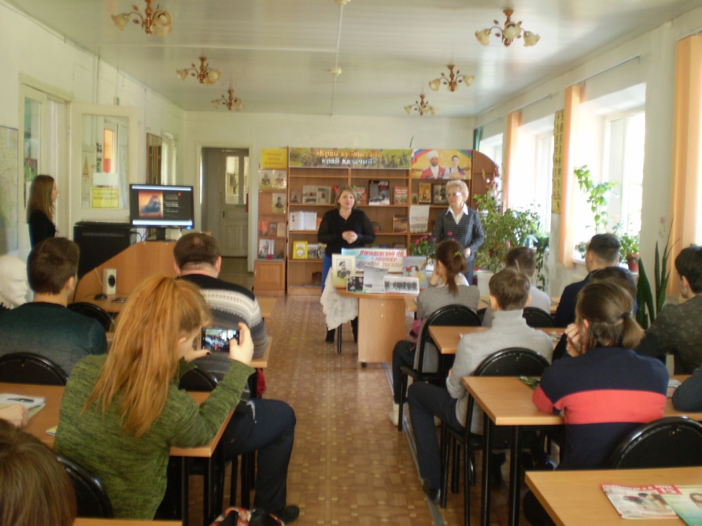 В читальном зале Щербиновской межпоселенческой библиотеки состоялся вечер-портрет «Кавалер Золотой звезды №1», проведенный для учащихся СОШ №2, посвящен 110-летию со дня рождения А.В. Ляпидевского. Героическую биографию нашего знаменитого земляка в поэтической композиции раскрыла зав. отделом обслуживания читателей МКУК ЩМБ Шемендюк З.Н. Щербиновский период жизни Анатолия Васильевича отразили редкие фотографии, предоставленные районным архивным отделом. Рассказ директора музея Жарковой Е.В. был основан на впечатлениях от встреч в Москве с семьей Ляпидевских. Большое впечатление на слушателей произвел документальный фильм «Дороже золота», который раскрыл подвиг А.В. Ляпидевского. Присутствовало 20 человек.
