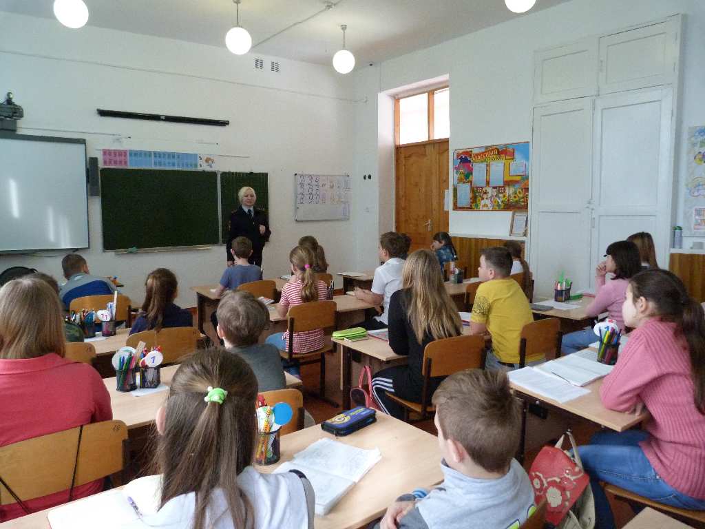 В рамках целевого профилактического мероприятия «Внимание – Дети!» и в преддверии весенних школьных каникул инспектор по безопасности дорожного движения Госавтоинспекции Щербиновского района проводит теоретические и практические занятия для учащихся начальных классов. Совместно с детьми разубирает правила перехода проезжей части дороги по нерегулируемому пешеходному переходу, указывает на скрытые опасности: припаркованный транспорт, кусты и деревья, растущие вдоль дороги и ограничивающие обзор видимости пешеходу. Рассказывает юным участникам дорожного движения, почему опасно стоять на краю тротуара или на бордюре, как правильно осматривать дорогу, чтоб сделать свой переход безопасным. Уделяется большое внимание велотранспорту и использованию мобильных телефонов во время перехода проезжей части дороги.