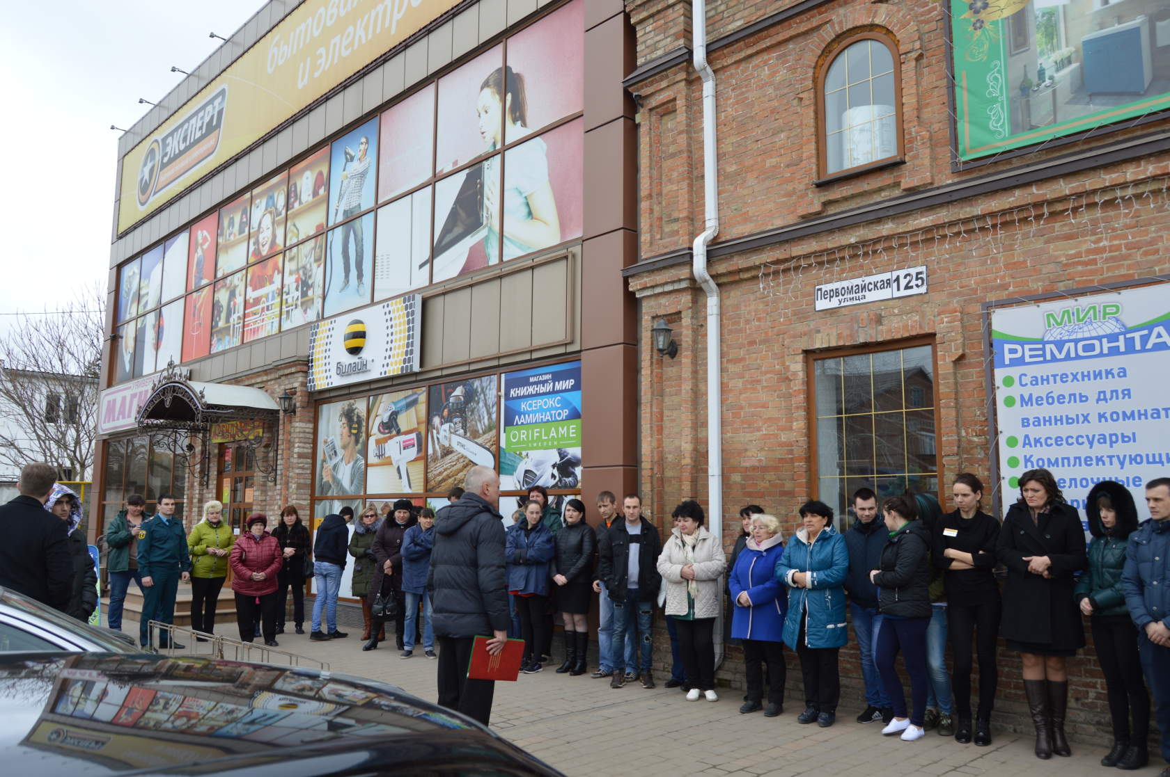 По поручению губернатора края В.Кондратьева во всех торгово-развлекательных комплексах, расположенных на территории Краснодарского края, проводятся проверки, учения. Сегодня в станице Старощербиновская в крупных торговых центрах были проведены учения по отработке элементов оповещения и эвакуации посетителей и сотрудников при пожаре. В ходе учений было эвакуировано более 150 человек. Тренировку провели начальник отдела по ГО и ЧС администрации района Павел Шабельный, сотрудники отдела надзорной деятельности и 132 пожарно-спасательной части.