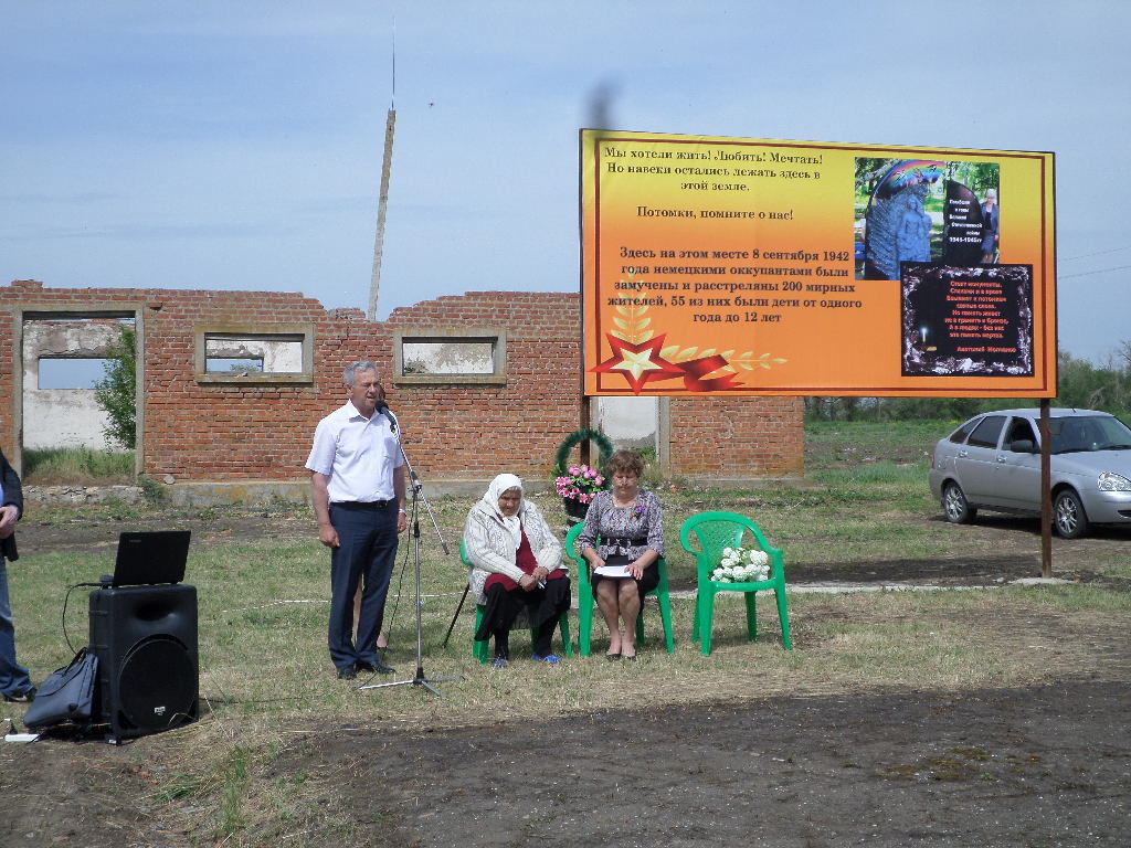 Сегодня на месте расстрела мирных жителей на территории станицы Новощербиновская (северо-западная окраина) прошел траурный митинг. На этом месте 8 сентября 1942 года немецкими оккупантами были замучены и расстреляны 200 мирных жителей, 55 из них были дети от одного года до 12 лет.
