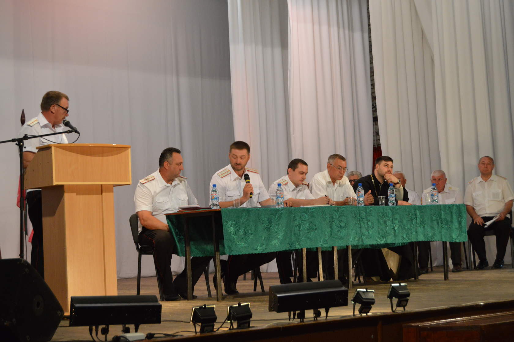 Сегодня в Центре народного творчества станицы Старощербиновская прошёл отчётный сбор районного казачьего общества. В работе сбора приняли участие глава района Сергей Цирульник, атаман Отдельского казачьего общества – Ейского казачьего отдела, подъесаул Павел Лях, председатель Совета муниципального образования Щербиновский район Михаил Кряжов, председатель СПК (колхоз) «Знамя Ленина» Юрий Хараман, военный комиссар города Ейска, Ейского и Щербиновского районов Николай Кузьменко, главы сельских поселений района.