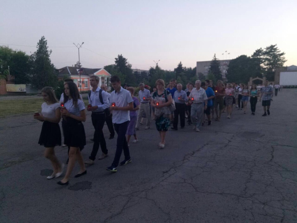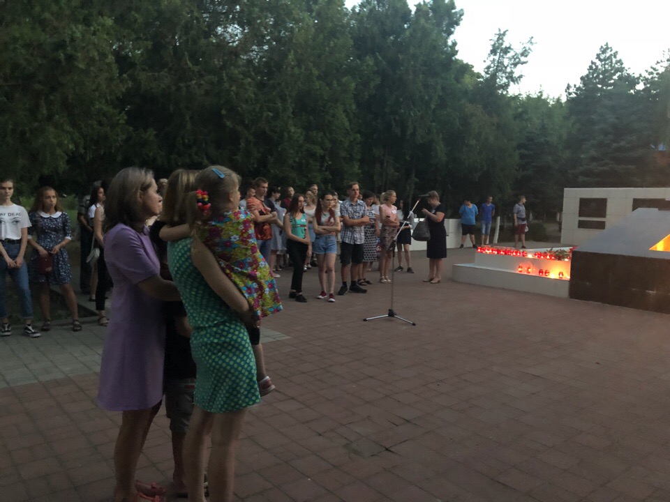Жители Щербиновского района зажгли траурные свечи памяти, в честь тех, кто бился с врагом на фронте, кто воевал в партизанских отрядах, кто страдал в фашистских концлагерях, кто без сна и отдыха трудился в тылу, кто дошёл до Берлина.