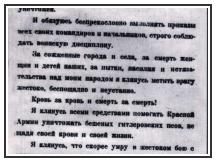 « …Но что главное в основу эскадрона входило. Подготовить нам кавэскадрон с личным составом, солдат хорошо обученных, обладать стрелковым оборудованием, пулеметом, автоматом, минометом и конем. Лично уметь обставить и бить врага, хорошо уметь рубить шашкой и уметь защитить от врага. ….. в 1942 году в августе враг стремительно наступал, а 6 августа достиг станицы Старощербиновской две роты пехоты врага противника, эскадрон бойцы броне – машины стремительным ударом кольца стали отбивать станицу. В лоб пустили роту пехоты, но мы своим эскдроном и пешим батальоном приостановили наступление немцев пулеметным и ружейным огнем. Немцы стали окапываться, но пустили одну роту в обход со стороны Новощербиновки, хотели нас отрезать от Ейска. Но мы вели бой с ними с утра и до сумерек. И так маневрируя боем старший лейтенант Борисов и старшина эскадрона Подолянко отбивались винтовками и пулеметами до захода солнца 6 августа 1942 года пришлось оставить станицу и направится на Ейск….»
