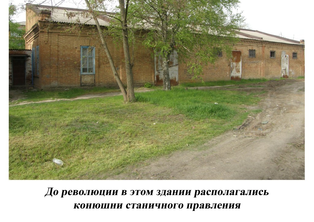 Здание Старощербиновского станичного правления располагалось на територии нынешней поликлиники. Это было саманное здание «Г»-образной формы. В 1973 году на его месте (ул.Красная,67) построен многоквартирный жилой дом для медработников.