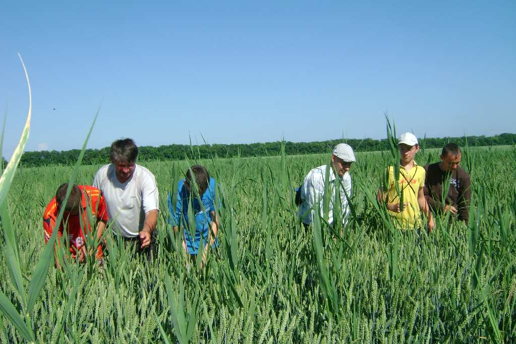 Ребята на семенных участках пшеницы проводили ручную прополку, обрывая колосья других видов колосовых культур.