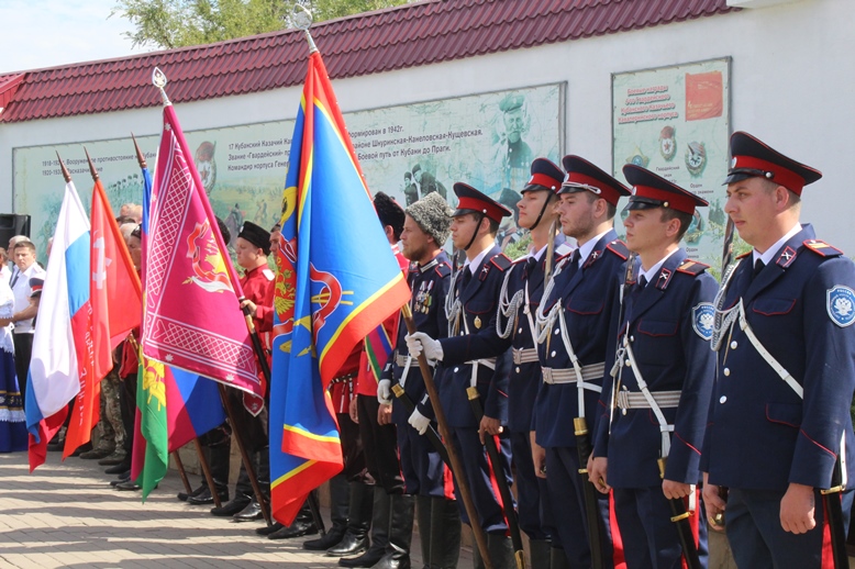 На мемориале славы собрались: делегации Ейского районного казачьего общества, Всевеликого войска Донского, Совета ветеранов Краснодарского края, представители Зерноградского района Ростовской области, Староминского, Крыловского, Щербиновского районов, казаки, школьники, жители и гости станицы Кущевской.