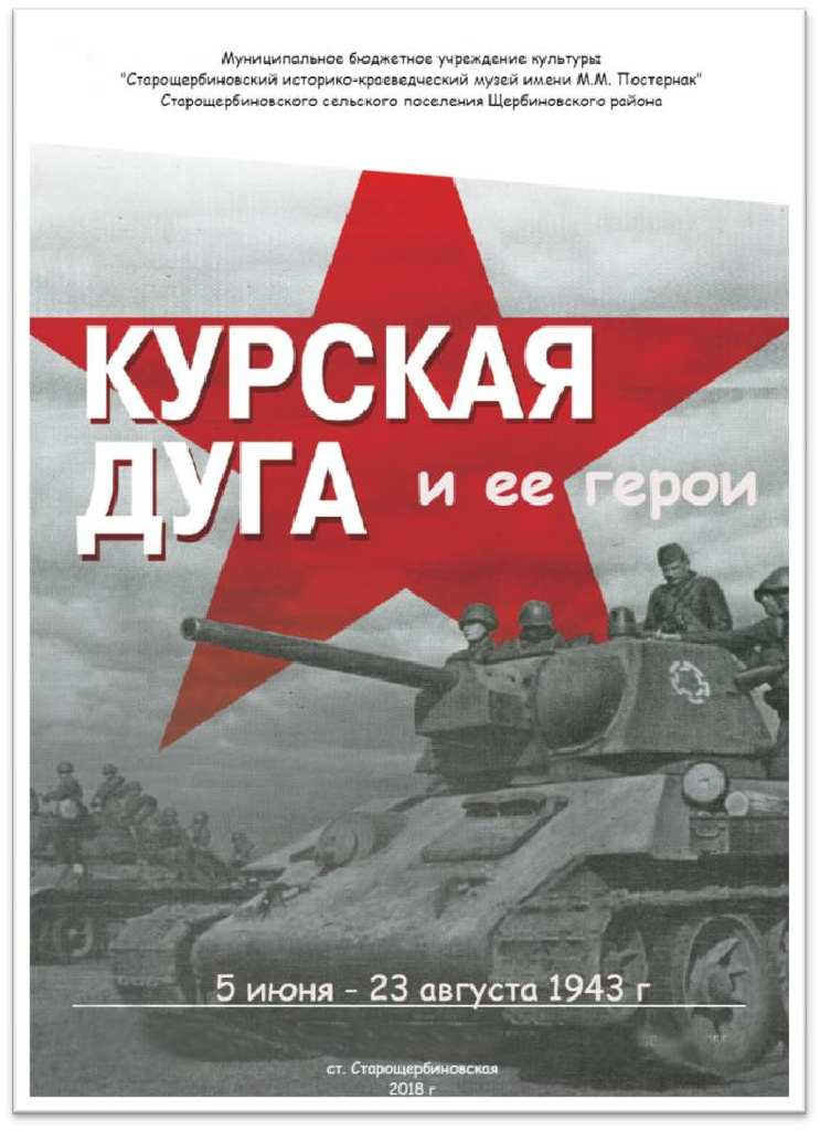Старощербиновский историко-краеведческий музей имени М.М. Постернак подготовил новую мини-экспозицию «Битва на Курской дуге». Она посвящена величайшему танковому сражению Великой Отечественной войны всех времен – Курской битве. С обеих сторон в ней принимали участие свыше четырех миллионов человек. Характерно, что в Курской битве принимали участие только чистокровные немцы, поскольку своим сателлитам они не могли доверить судьбу столь важного сражения.Среди героев Курской битвы были и щербиновцы.Основу экспозиции составили материалы фондовой коллекции музея, фотографии, награды, документы и личные вещи земляков – участников Курской битвы.