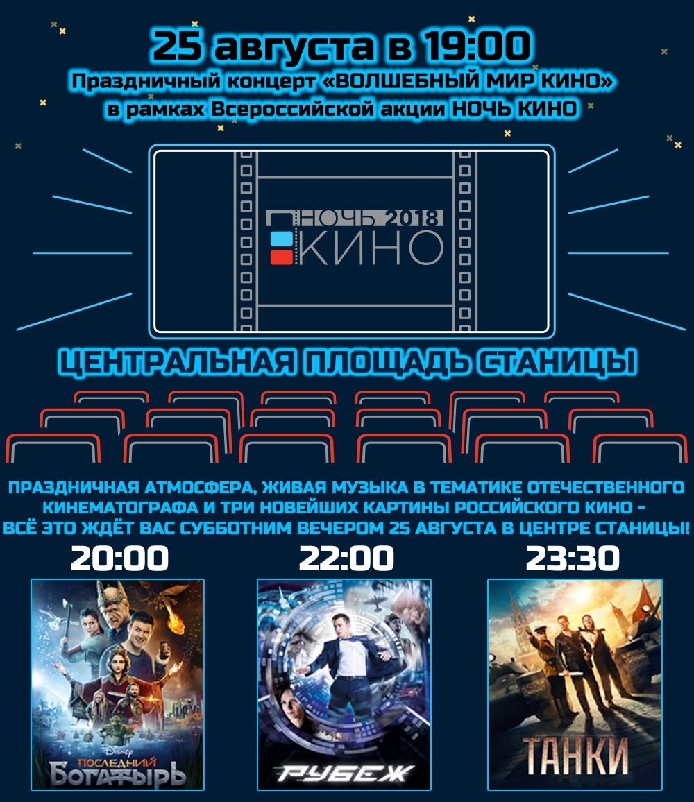 Приглашаем жителей района 25 августа в 19.00 на "Ночь кино"