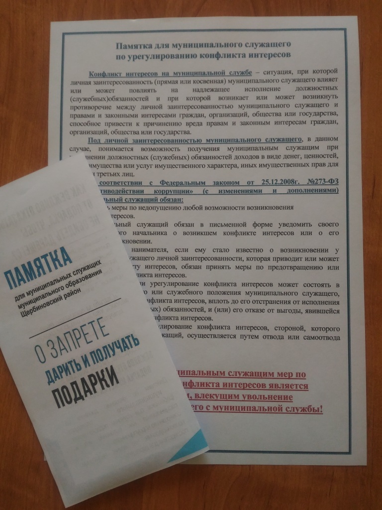 По окончании семинара всем присутствующим были вручены памятки по урегулированию конфликта интересов и о запрете дарить и получать подарки.