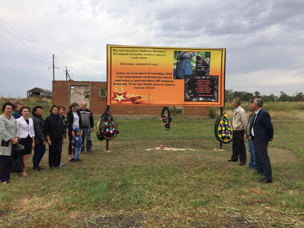 На месте расстрела мирных жителей на территории станицы Новощербиновской (северо-западная окраина) почтили память погибших жителей станицы. На этом месте 8 сентября 1942 года немецкими оккупантами были замучены и расстреляны 200 мирных жителей, 55 из них были дети от одного года до 12 лет.