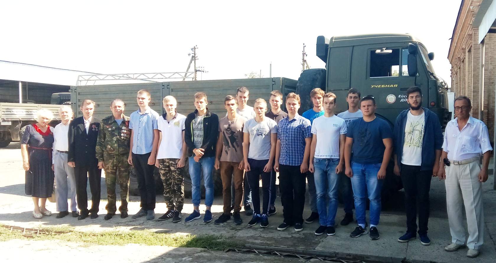 В Местном отделении ДОСААФ России Щербиновского района Краснодарского края для курсантов ВУС состоялся Урок мужества, посвященный военным водителям. В скором времени наши курсанты отправятся защищать Родину, свои семьи, свой народ. Они станут военными водителями. Кротенко М., заместитель председателя Местного отделения ДОСААФ России Щербиновского района Краснодарского края рассказала о профессии «военный водитель», об ответственности не только за свою жизнь, но и за жизнь перевозимого личного состава. О первом военном шофере, удостоенном звания Герой Советского Союза Владимире Кузьмиче Артюхе. Его подвигу была посвящена поэма Александра Твардовского «Шофёр Артюх». О празднике - Дне военного автомобилиста. На Уроке присутствовали гости: Коваль Н., заместитель председателя Щербиновской районной организации Краснодарской краевой общественной организации ветеранов (пенсионеров, инвалидов) войны, труда, вооруженных сил и правоохранительных органов, историк. Поздравил курсантов с 81 годовщиной образования Краснодарского края, рассказал о ветеранах ВОВ ст. Старощербиновской, о первом Герое Советского союза, нашем земляке А.В. Ляпидевском. Котенко В., председатель первичной ветеранской организации воинов – афганцев, воин – афганец, поделился воспоминаниями о службе в Афганистане, о долгих и опасных дорогах в горах, как помогали друг другу в тяжелейших испытаниях, о том, что некоторым нашим землякам не суждено было вернуться из Афганистана. Поделился некоторыми «секретами» профессионального мастерства из опыта срочной службы в Германии. Фролов А., председатель первичной ветеранской организации воинов – чеченцев, участник локального конфликта в Чечне, сказал о том, что взаимовыручка и взаимопомощь способны закончить любую конфронтацию, помочь выиграть любую войну. Повчун Н., представитель от Щербиновской районной организации Краснодарской краевой общественной организации ветеранов (пенсионеров, инвалидов) войны, труда, вооруженных сил и правоохранительных органов пожелала курсантам здоровья и мирного неба, чтобы никогда и никому из них не пришлось брать оружия в руки. Преподаватель МО ДОСААФ России Щербиновского района Краснодарского края Сергиенко И., кадровый офицер, воин – афганец, пожелал ребятам всегда быть ответственными, исполнительными и дисциплинированными водителями. Мероприятие закончилось фотографией на память.