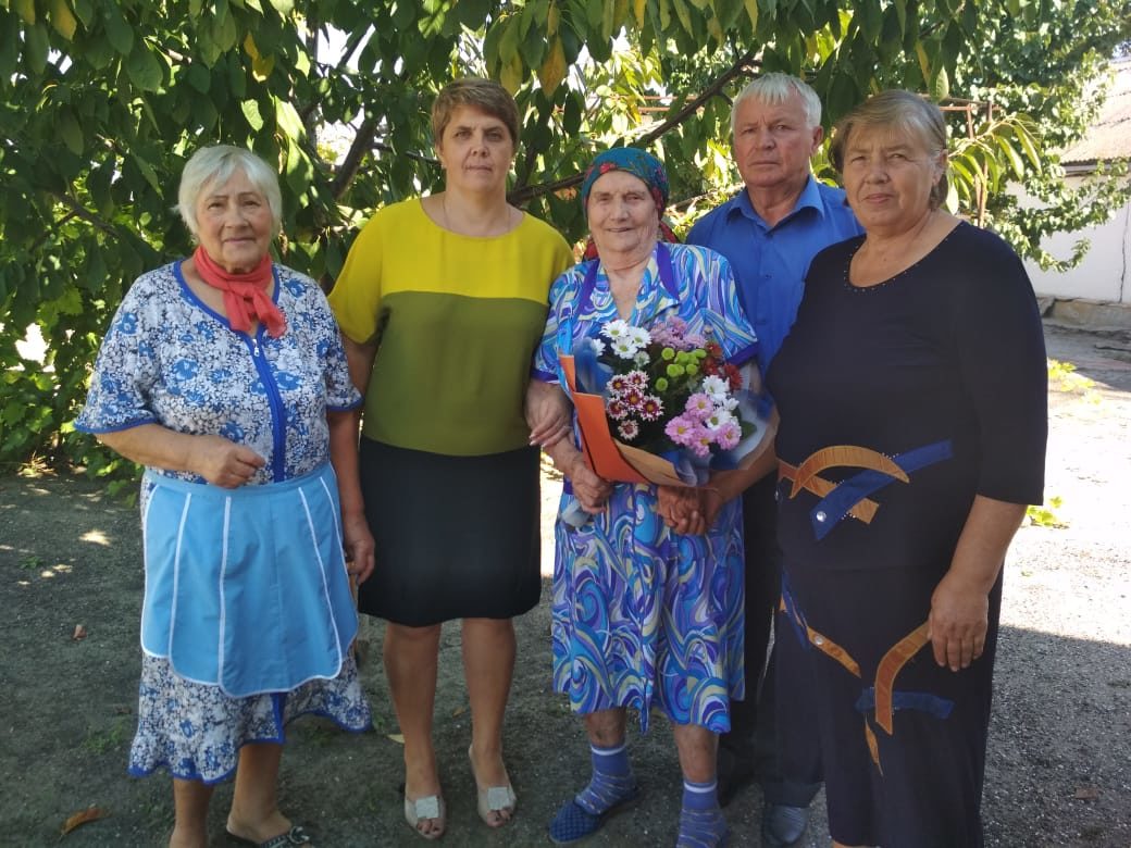Сегодня глава Николаевского сельского поселения Николай Сиротенко вместе с ветеранским активом и профсоюзом СОШ № 8 поздравили с 90-летием Кочерга Татьяну Ивановну.
