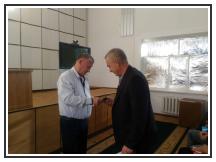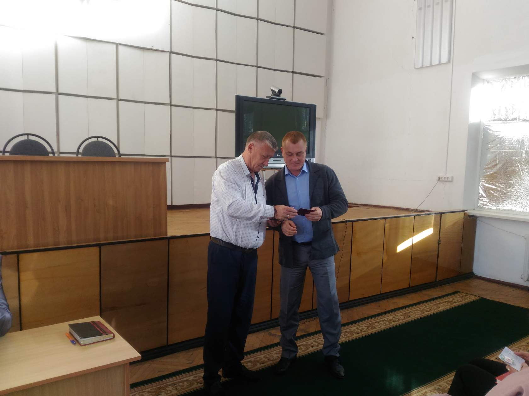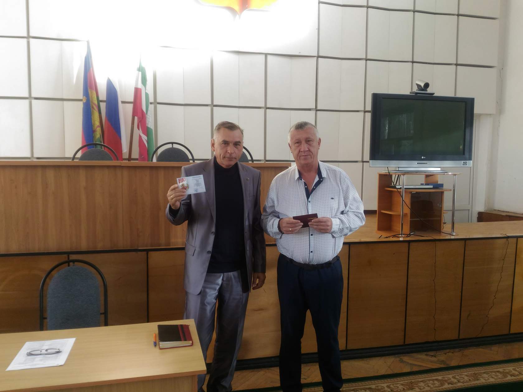 На планёрном совещании с руководителями организаций, предприятий и учреждений района начальник отдела по физической культуре и спорту администрации района Валерий Курило вручил знаки отличия Всероссийского физкультурно-спортивного комплекса «Готов к труду и обороне». Глава муниципалитета Сергей Цирульник и его заместитель Сергей Плахотный получили золотые знаки.