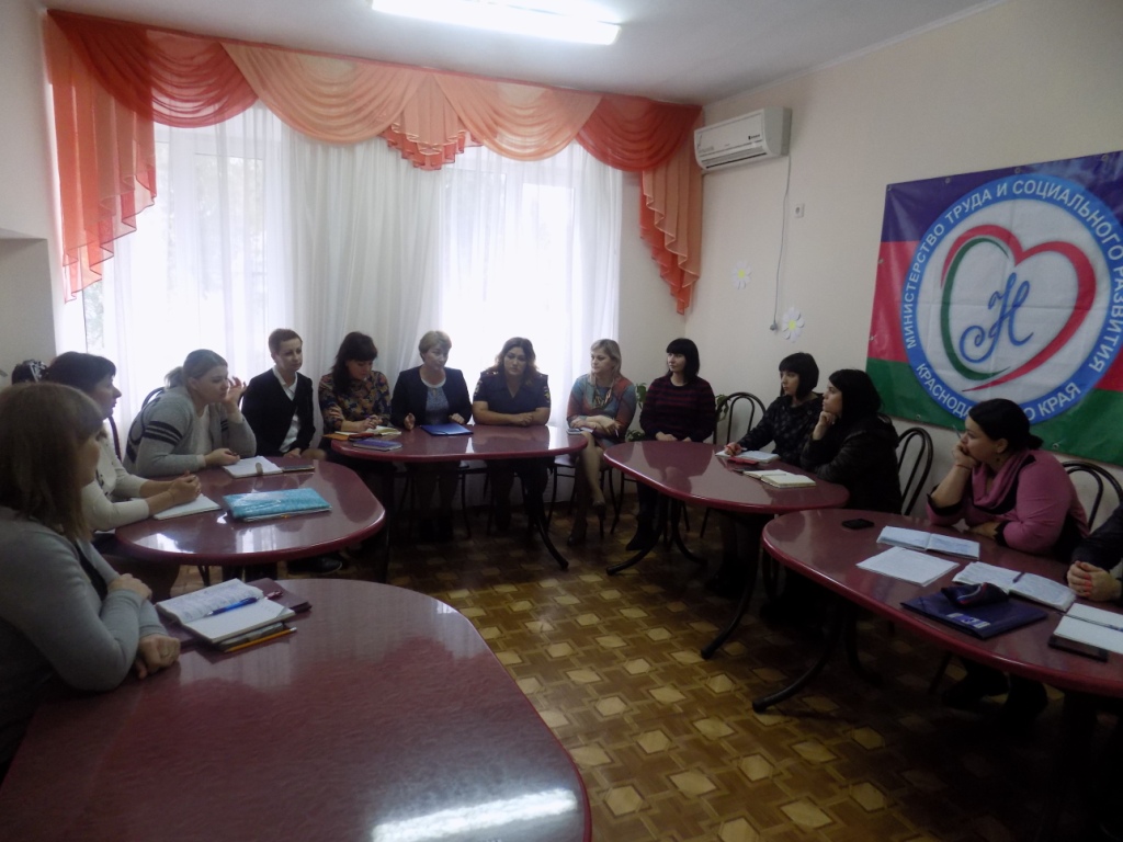 Комиссией по делам несовершеннолетних и защите их прав района была организована рабочая встреча на тему: «Роль межведомственного взаимодействии в профилактике безнадзорности несовершеннолетних и семейного неблагополучия». В мероприятии приняли участие руководители и специалисты отделения помощи семье и детям ГБУ СО КК «Щербиновский КЦСОН», начальник отдела по вопросам мер социальной поддержки и социального обслуживания отдельных категорий и групп населения УСЗН в Щербиновском районе Н.В. Самохвалова, специалист 3 разряда отдела по вопросам мер социальной поддержки и социального обслуживания отдельных категорий и групп населения УСЗН в Щербиновском районе Т.В. Семенова, начальник отдела по делам несовершеннолетних района В.И. Гришко, врио заместителя начальника УУП и ПДН ОМВД России по Щербиновскому району Ю.В. Мазурова.