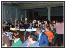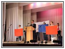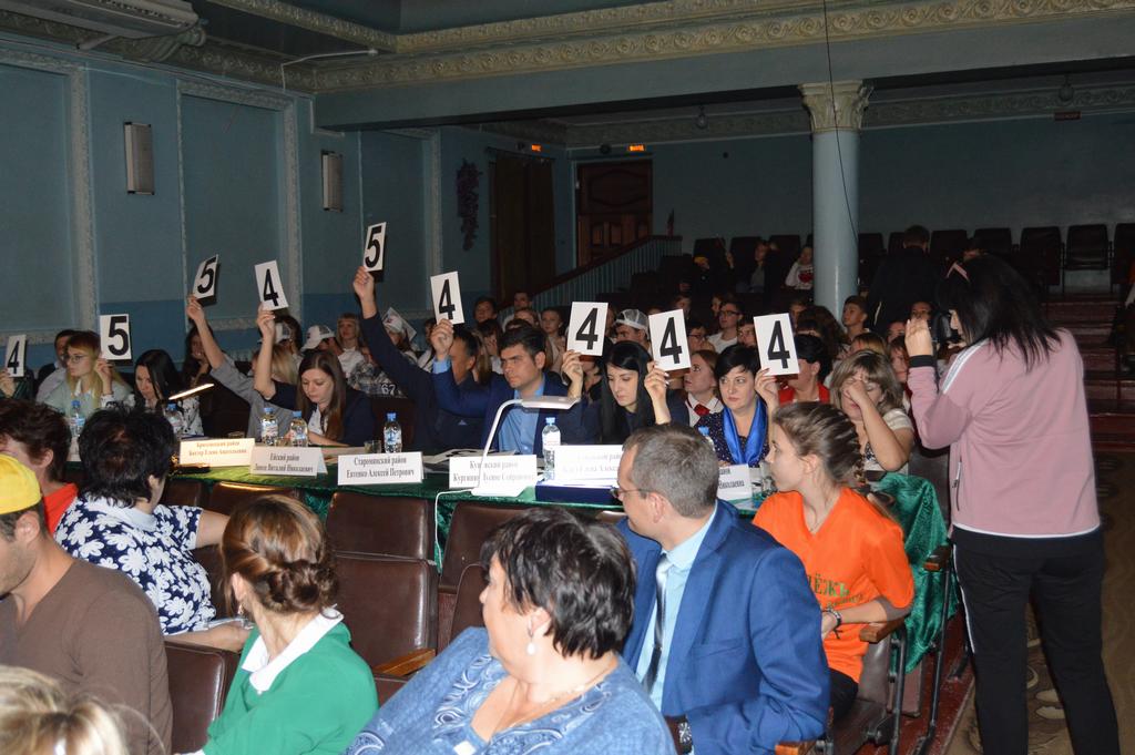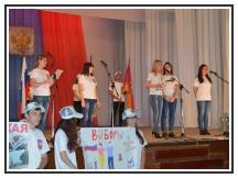 Начали команды выступление с творческого конкурса на тему «Наш опыт организации выборов», лучшими в этой номинации была команда Ейского района, набравшая 44 балла из 50.