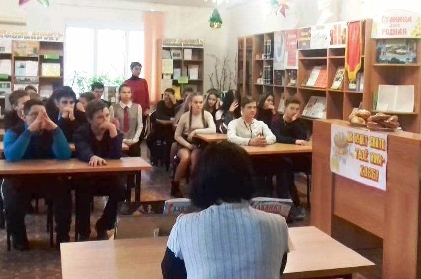 22 декабря 2018 года в читальном зале МКУК мо Щербиновский район «Щербиновская межпоселенческая библиотека» состоялся вечер – встреча «Хлеб – от земли, сила – от хлеба». Целью встречи было показать учащимся старших классов СОШ №1 экономическую и нравственную ценность хлеба. В ходе часа интересной информации «С хлебом на Вы» слушатели познакомились с историей хлеба. Мастер - пекарь хлебокомбината Разумова Наталья Дмитриевна занимательно раскрыла процесс производства хлеба, особый восторг вызвала дегустация хлебобулочных изделий. Слушатели активно участвовали в викторине «Хлеб – батюшка», также их внимание привлекли красочные журнальные публикации и книги, представленные на книжной выставке «Хлеб – дар Божий».