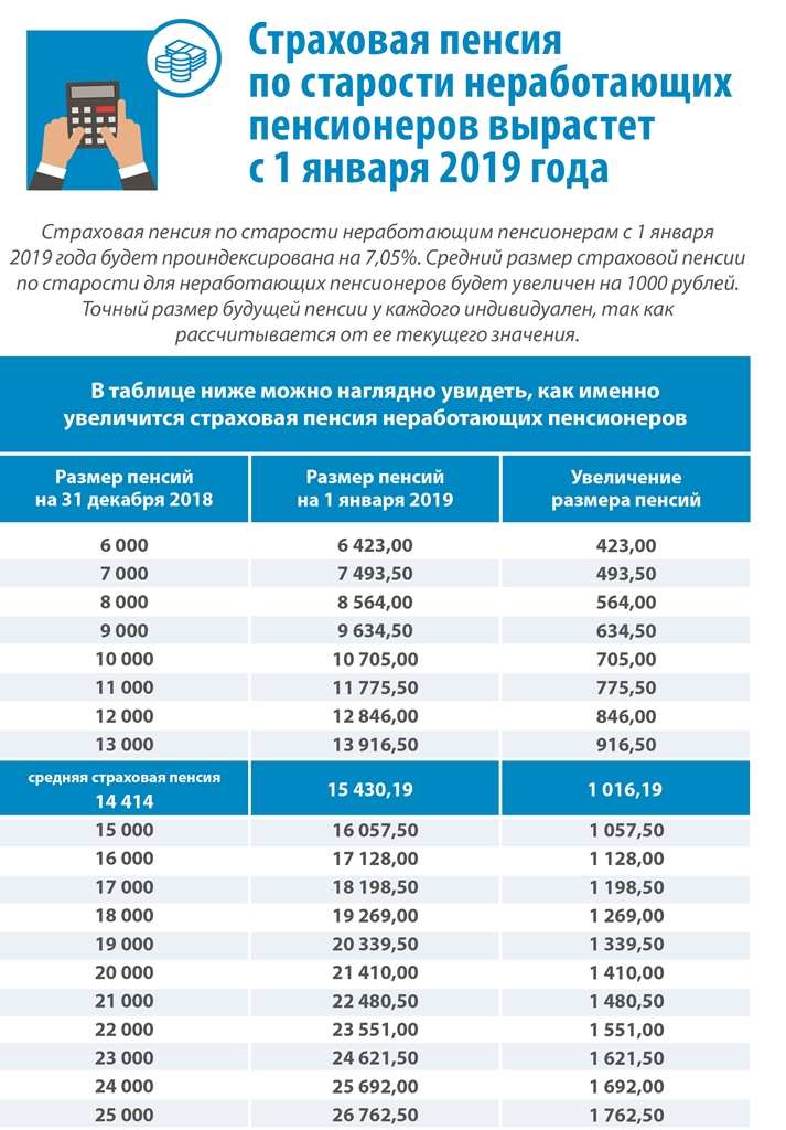 С 1 января страховые пенсии неработающих пенсионеров увеличиваются на 7,05%