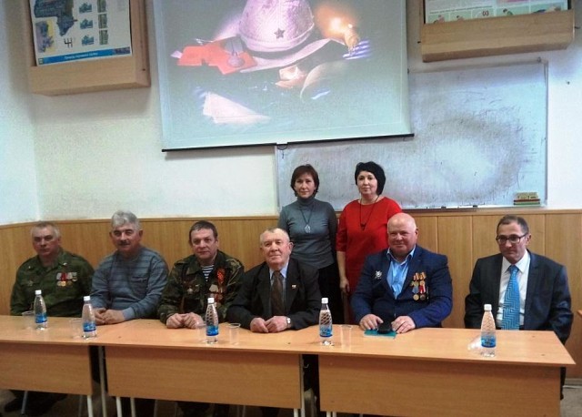 27 декабря 2018 года в Местном отделении ДОСААФ России Щербиновского района Краснодарского края состоялся Урок мужества «Воинский долг на земле неизменен», посвященный вводу ограниченного контингента советских войск в Афганистан, для курсантов ВУС и волонтеров отдела молодежи муниципального образования Щербиновский район. На экране мультимедийной установки кадры ввода Советских войск в Афганистан, кадры боев и затишья, фотографии советских солдат. Заместитель председателя МО ДОСААФ Марина Кротенко представила гостей: Коваль Николай Иванович, заместитель председателя Щербиновской районной организации Краснодарской краевой общественной организации ветеранов (пенсионеров, инвалидов) войны, труда, вооруженных сил и правоохранительных органов, историк. Котенко Василий Владимирович, председатель первичной ветеранской организации воинов – афганцев. В Афганистане – командир заставы по сопровождению колон, 1986 - 1988 гг. Сергиенко Игорь Анатольевич, преподаватель МО ДОСААФ России Щербиновского района Краснодарского края. В Афганистане – заместитель начальника штаба батальона, командир взвода, 1985 – 1987 гг. Петренко Николай Владимирович, капитан. В Афганистане бортовой техник самолета АН – 26, 1987 - 1988 гг. Гугля Константин Владимирович, воин – афганец. В Афганистане – артиллерист, 1986 - 1988 гг. Египко Юрий Леонидович, воин – афганец. В Афганистане – механик – водитель, 1980 г. Марина Кротенко рассказала о том, что афганская война (1979-1989) - военный конфликт на территории Демократической республики Афганистан (Республика Афганистан с 1987 года) между правительственными силами Афганистана при поддержке Ограниченного контингента советских войск с одной стороны и вооружёнными формированиями афганских моджахедов («душманов»), пользующихся политической, финансовой, материальной и военной поддержкой ведущих государств НАТО и консервативного исламского мира с другой стороны. Уже 25 декабря начался ввод ограниченного контингента советских войск (ОКСВ) в Афганистан. Первыми на территорию Афганистана вступили части 108-й мотострелковой дивизии, а также части 103-й гвардейской воздушно-десантной дивизии, которые посадочным способом были десантированы в Кабул. Также в этот день на территорию страны вошёл 4-й десантно-штурмовой батальон 56-й отдельной десантной-штурмовой бригады, в задачу которому ставилось взятие под охрану стратегически важного тоннеля на перевале Саланг. Гости Урока говорили о том, что война – явление страшное, жестокое. Общие потери составили около 14000 человек. На территории страны было заложено около 12 млн. мин, 7 млн. из которых до сих пор не нейтрализованы. Согласно этим данным, на момент вывода войск СССР потерял 103 истребителя и военно-транспортных самолета, 317 вертолетов, 147 танков, 1314 транспортных средств. И наши войска на чужой земле защищали интересы своего народа и выполняли интернациональный долг. Память о погибших воинах свято хранят их товарищи по оружию, их семьи и близкие. И память эта будет жива, пока мы о них помним, пока мы о них говорим. Война будет жить в памяти сирот, оставшихся без отцов. Будет жить в душах тех, кто в ней участвовал. А в памяти людской ей ещё жить долго, потому что её история написана кровью солдат и слезами матерей. Что бы ни говорили современные аналитики об Афганской войне, сегодня можно с п