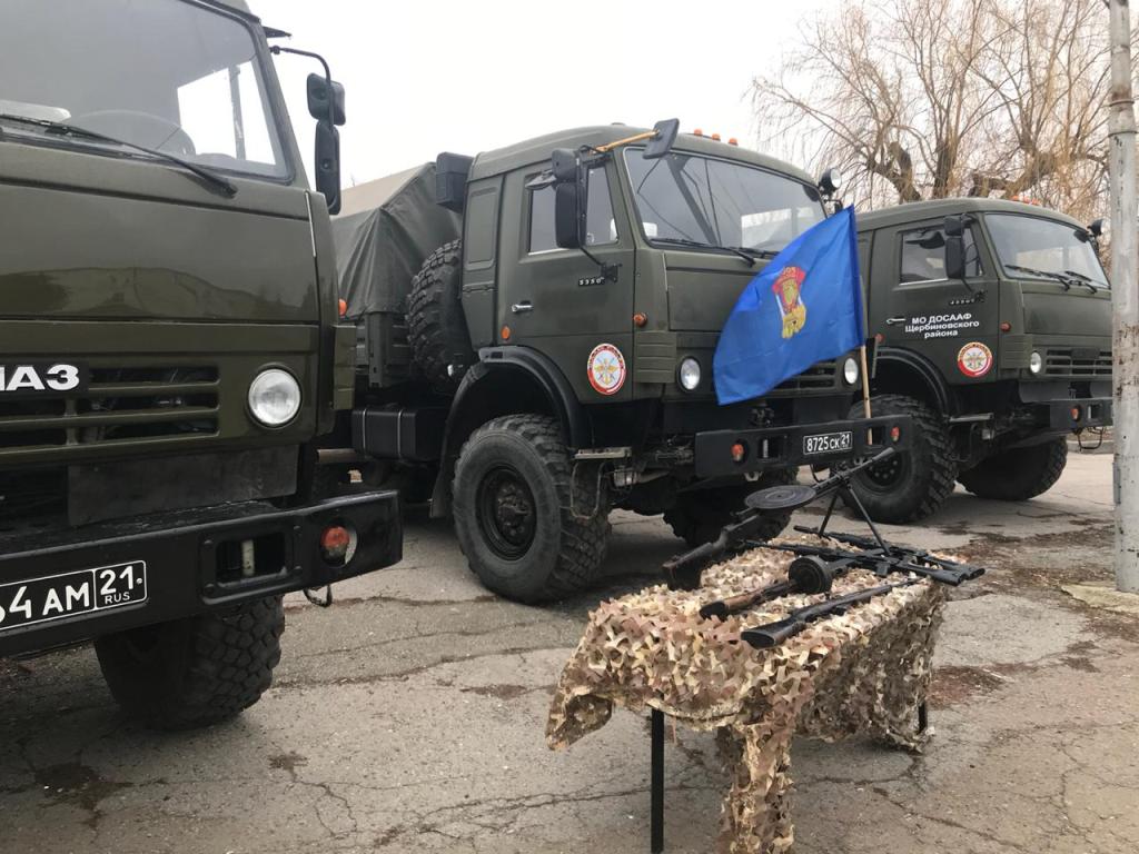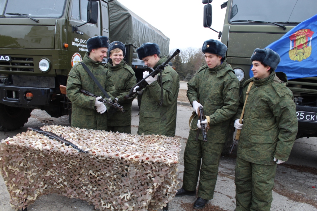 Торжественное открытие месячника оборонно-массовой и военно-патриотической работы « Воинский долг- честь и судьба» началось с выставки военной техники и оружия Местного отделения ДОСААФ России Щербиновского района Краснодарского края. На выставке учащиеся общеобразовательных школ района и воспитанники военно – патриотических клубов могли познакомиться и тщательно рассмотреть: пулемет системы Дегтярева, автоматы Калашникова, самозарядный карабин Симонова (винтовка СКС), пистолет – пулемет Шпагина (ППШ). Военная техника была представлена КАМАЗами 4350 и 5350, состоящими на вооружении в Российской армии.
