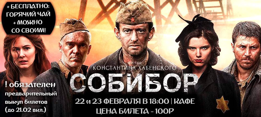 22 И 23 ФЕВРАЛЯ В КАФЕ КИНОТЕАТРА - АКЦИОННЫЕ СЕАНСЫ "СОБИБОР" (12+) В 18:00 | 100 РУБЛЕЙ