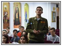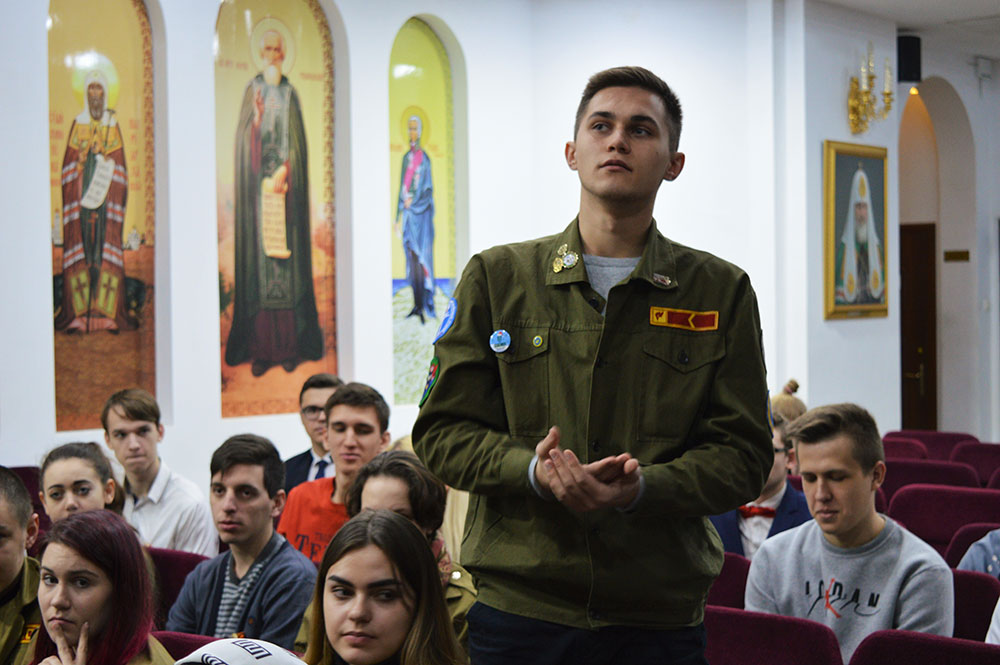 5 февраля в конференц-зале Войскового собора Святого Благоверного князя Александра Невского прошел круглый стол, посвящённый презентации мероприятий патриотической направленности волонтерских центров учебных заведений. В мероприятии приняли участие руководитель регионального штаба ООД «Бессмертный полк России», сопредседатель регионального штаба ОНФ в Краснодарском крае, депутат Законодательного Собрания края Левитский Борис Евгеньевич, Настоятель Войскового собора святого благоверного князя Александра Невского, духовник Кубанского казачьего войска и Союза казачьей молодежи Кубани, Протоиерей Иоанн Гармаш, представители регионального штаба ООД «Бессмертный полк России», Совета Регионального отделения «Поискового движения России», государственного казённого учреждения Краснодарского края «Центр патриотического воспитания молодежи Кубани», волонтерских центров образовательных учреждений Кубани: волонтеры Кубанского государственного аграрного университет имени И. Т. Трубилина, активисты движения "ПОИСК" ФГБОУ ВО КубГАУ, представители Центра привлечения волонтеров КубГТУ, волонтеры государственного бюджетного профессионального образовательного учреждения Краснодарского края «Краснодарский технический колледж. Со словами приветствия к участникам обратился Настоятель Войскового собора святого благоверного князя Александра Невского Иоан, он отметил необходимость проведения подобных мероприятий, которые основываются на исконно русских традициях военно-патриотического воспитания. Представители волонтерских центров презентовали свои патриотические проекты и волонтерские практики. В форме диалога участники обсудили особенности реализации каждого проекта, выявили сильные стороны и аспекты, которые требуют доработки. А также договорились о сотрудничестве в проведении крупных патриотических мероприятий для детей и молодежи. Напомним, что круглый стол прошел в рамках Межрегиональной патриотической информационно-просветительской программы "Бессмертный полк - наша Победа!". «Чтобы подержать «патриотический импульс» необходимо консолидировать усилия всех заинтересованных институтов гражданского общества и государства. С этой целью мы проведем межрегиональный Форум «БЕССМЕРТНЫЙ ПОЛК – НАША ПОБЕДА!», на котором соберутся представители региональных штабов проекта, в том числе молодежь, из 30 субъектов РФ. В рамках межрегионального Форума участники получат возможность обменяться информацией об особенностях реализации патриотических мероприятий своего региона, новые знания о социальном проектировании, приняв участие в семинарах и тренингах межрегионального форума в городе Сочи, который пройдет в марте 2019 года. В результате будет сформирована большая группа добровольцев, в которые войдут представители разных поколений россиян» - обратился к участникам круглого стола Левитский Борис Евгеньевич. Программа реализуется с использованием гранта Президента Российской Федерации на развитие гражданского общества, предоставленного Фондом президентских грантов.