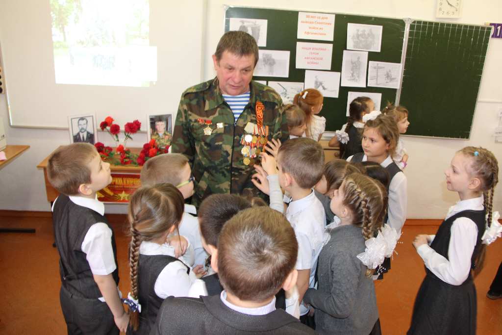 Накануне каникул у первоклассников МБОУ СОШ № 2 им. Арчакова станицы Старощербиновской прошли Уроки мужества с войнами-интернационалистами Котенко В.В. и майором запаса Сергиенко И.А. Войны - афганцы рассказали ребятам о тяжести военных дней: «...днем жара за 60 градусов, и в любой момент в полной тишине ты можешь получить пулю в спину». Для гостей ребята подготовили стихи. Учитель ИЗО Вивчарь Ю.Н. исполнил свою авторскую песню об Афганистане. Педагоги подготовили презентации. Ребята задавали вопросы, интересовались судьбой героев - участников встречи. Традиционно аналогичные уроки прошли во всех школах района.
