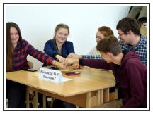 Соревноваться между собой в умении находить правильный ответ на поставленный перед ними вопрос за ограниченное время вызвались 6 команд из Щербиновского индустриального техникума: «БЭМС», «ЩИТ», «Знатоки», «Молодежь», «Педагоги», «Охотники за удачей». Каждой команде из пяти человек предстояло пройти 4 тура: 1-тур «Разминка», 2-тур «В РФ Президент….», 3-тур «Процедура голосования», 4-тур музыкальный, посвященный Гимну РФ. Игра сопровождалось мультимедийной презентацией.