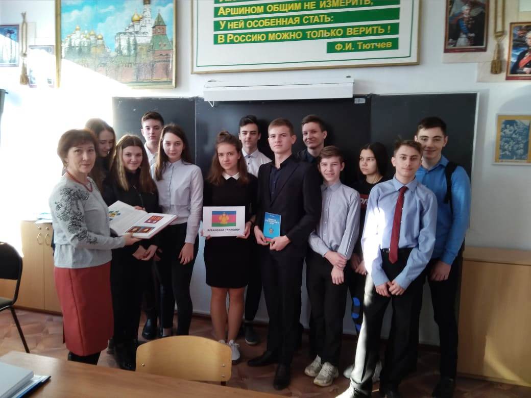 21 февраля 2019 года МКУК ЩМБ провела для учащихся старших классов исторический экскурс «Кубанский триколор» Цель: Воспитание патриотизма и гордости за свою Родину. Задача: Рассказать об истории возникновения кубанского флага. В ходе мероприятия участникам встречи напомнили историю, происхождение и значение символики кубанского флага, о том, какой путь прошел кубанский стяг, каким реформам предавался. Слушатели обратили внимание на книжную выставку «Символы Кубани», особый интерес они проявили к изданию «Официальные символы Краснодарского края и муниципальных образований».