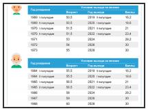 Пример: женщина 1970 года рождения (март), имеющая 11 лет стажа на севере и 18 лет страхового стажа, по старому законодательству должна была выйти на пенсию в июле 2021 года в возрасте 51 года и 4 месяцев. Учитывая, что в 2021 году пенсионный возраст будет повышен на три года, женщина сможет выйти на пенсию в июле 2024 года по достижении 54 лет и 4 месяцев.