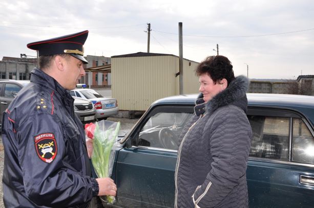 Сотрудники Госавтоинспекции Щербиновского района поздравили женщин водителей с праздником 8 Марта