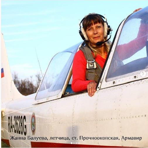 К примеру, в станице Прочноокопской под Армавиром живет женщина-летчик Жанна Балуева. Спортивные самолеты наша землячка пилотирует больше 30 лет. Она была за штурвалом даже беременной, а однажды прославилась экстремальным трюком: смогла пролететь на высоте 100 метров, стоя на крыше собственного самолета.