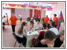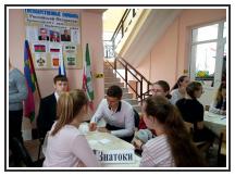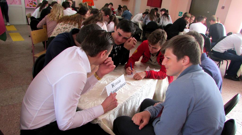 Соревноваться между собой в умении находить правильный ответ на поставленный перед ними вопрос за ограниченное время вызвались одиннадцать команд: СОШ № 1«Чокнутый профессор», СОШ № 2 «Знатоки», СОШ № 3 «Умники», СОШ № 5 «21 век», СОШ № 7 «Эрудиты», СОШ № 8 «Азарт», СОШ № 9 «Энерджи-тайм», СОШ № 10 «Десяточка», СОШ № 11 «Аврора», СОШ № 12 «Новички», СОШ № 13 «Юные Эйншейны». Каждой команде из шести человек предстояло пройти 4 тура, игра сопровождалась мультимедийной презентацией. После традиционной минуты, которая отводится на обсуждение вопроса, волонтеры передавали жюри ответы команд на специальных бланках. Ведущая не только озвучивала ответы, но и давала развернутые комментарии на поставленные вопросы, подготовленные территориальной избирательной комиссией Щербиновская.