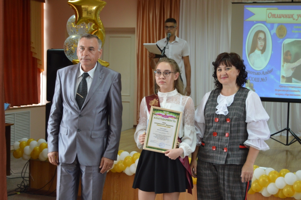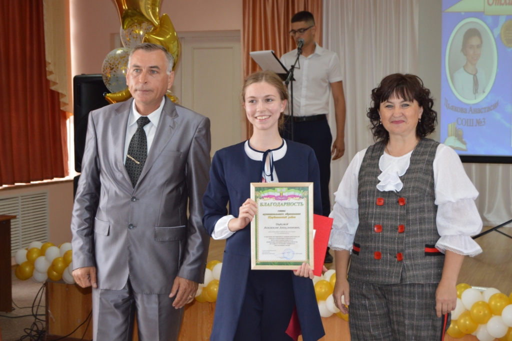 Именно этим выпускникам сегодня Сергей Юрьевич и начальник управления образования Ольга Приставка вручили благодарственные письма главы муниципального образования Щербиновский район за лучшие достижения в учёбе.
