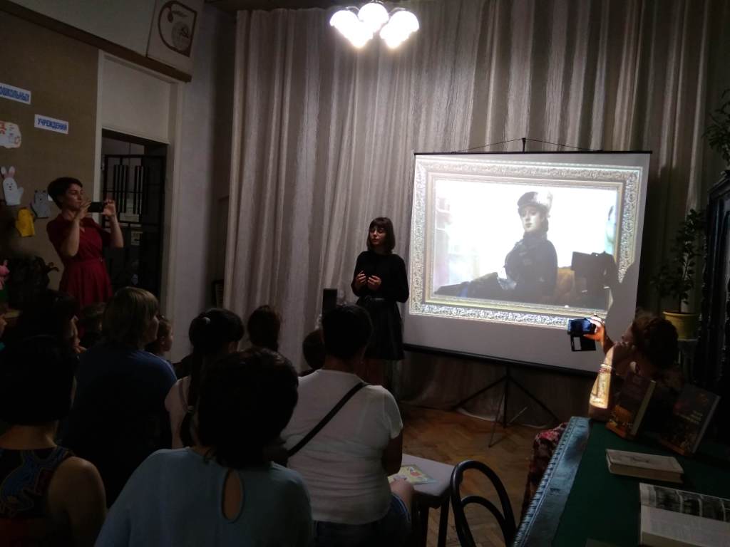 Следующим номером программы стало выступление ребят из объединения «Живое слово» Дома детского творчества «О чем говорят картины». Они представили вниманию зрителей поэтические произведения, которые можно использовать для иллюстрации картин. Были представлены как классические картины и стихотворения, так и произведения современных авторов.