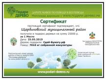 С 15 марта по 25 мая в Краснодарском крае проходил Всероссийский Экомарафон ПЕРЕРАБОТКА «Сдай макулатуру – спаси дерево!». Акция прошла в виде соревнований между районами и городами Краснодарского края. И вот подведены итоги акции! Щербиновский район занял 1 место в экомарофоне! Район будет награждён сертификатом на покупку деревьев на сумму 25 тысяч рублей. Мы благодарим всех, кто откликнулся и принял участие в акции, ведь только общими усилиями мы сможем позаботиться о сохранении природных ресурсов нашей страны.