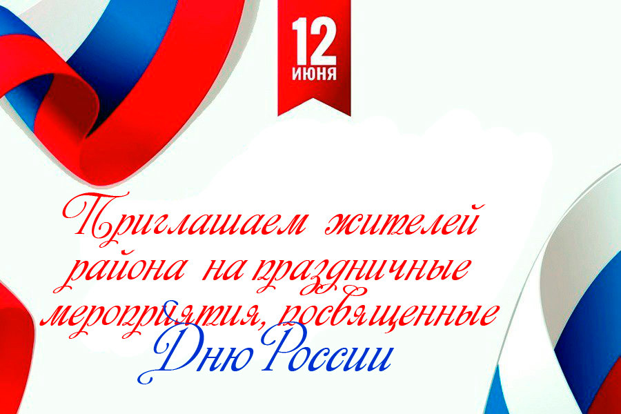 Уважаемые жители района! Приглашаем Вас 12 июня на праздничные мероприятия, посвященные Дню России