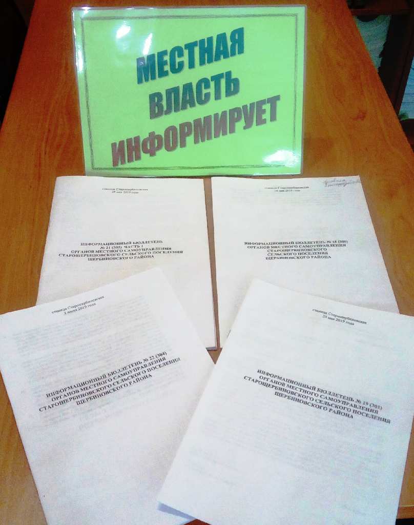 В целях повышения уровня правовой культуры сотрудники Щербиновской межпоселенческой библиотеки 18 июня провели час информации «Местная власть информирует» для членов Всероссийского общества слепых. Особое внимание было уделено Информационным бюллетеням, в которых опубликованы муниципальные правовые акты органов местного самоуправления муниципального образования Щербиновский район, Старощербиновского сельского поселения. Благодаря этим изданиям, жители района имеют возможность получать информацию о социально - экономическом, культурном развитии муниципального образования. Особый интерес слушатели проявили к графикам приема граждан руководством муниципального образования Щербиновский район.