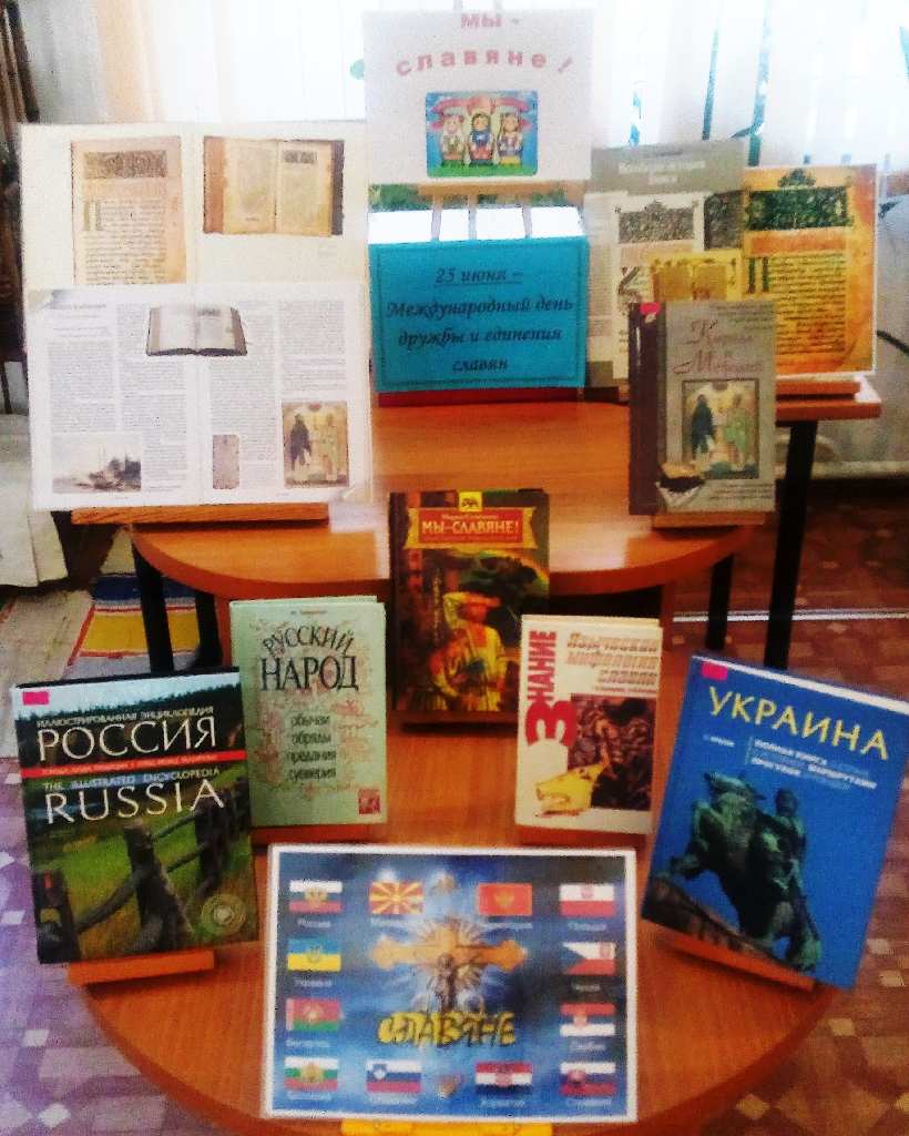 25 июня 2019 года в Международный день дружбы и единения славян в МКУК ЩМБ вниманию читателей представлены книжно- иллюстративная выставка и час информации « Мы – славяне!» Цель: развивать интерес и уважение к другим национальным культурам. В этот день праздник отмечают около 300 миллионов славян во всем мире. Особое внимание в ходе встречи уделено появлению славянской письменности, культуре, традициям и обычаям славянских народов. Девизом встречи стали слова: «У нас одни надежды. И дальше, как и прежде, Нам с вами вместе жить. Давайте же дружить!»