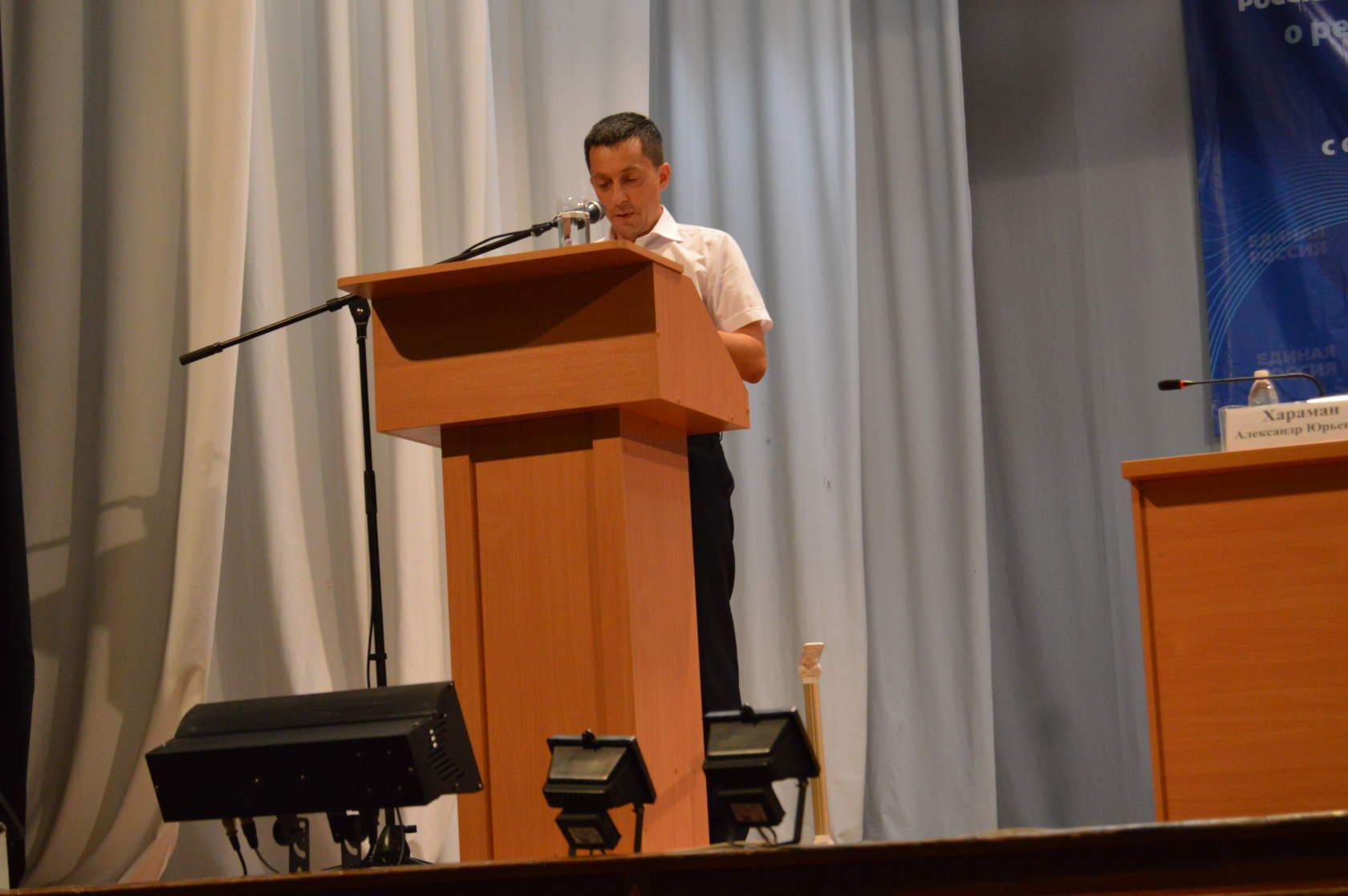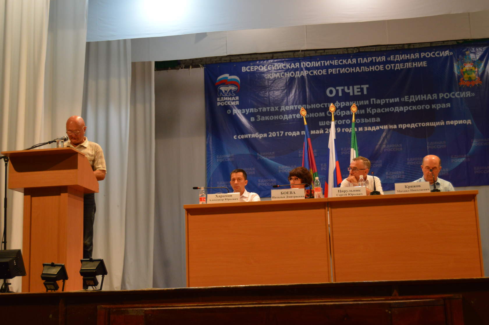 По основному вопросу повестки дня "Отчет о результатах деятельности фракции Партии "ЕДИНАЯ РОССИЯ" в Законодательном Собрании Краснодарского края за период с сентября 2017 года по май 2019 года и задачи на предстоящий период" выступил член фракции Партии "Единая Россия" в Законодательном Собрании Краснодарского края Александр Хараман.