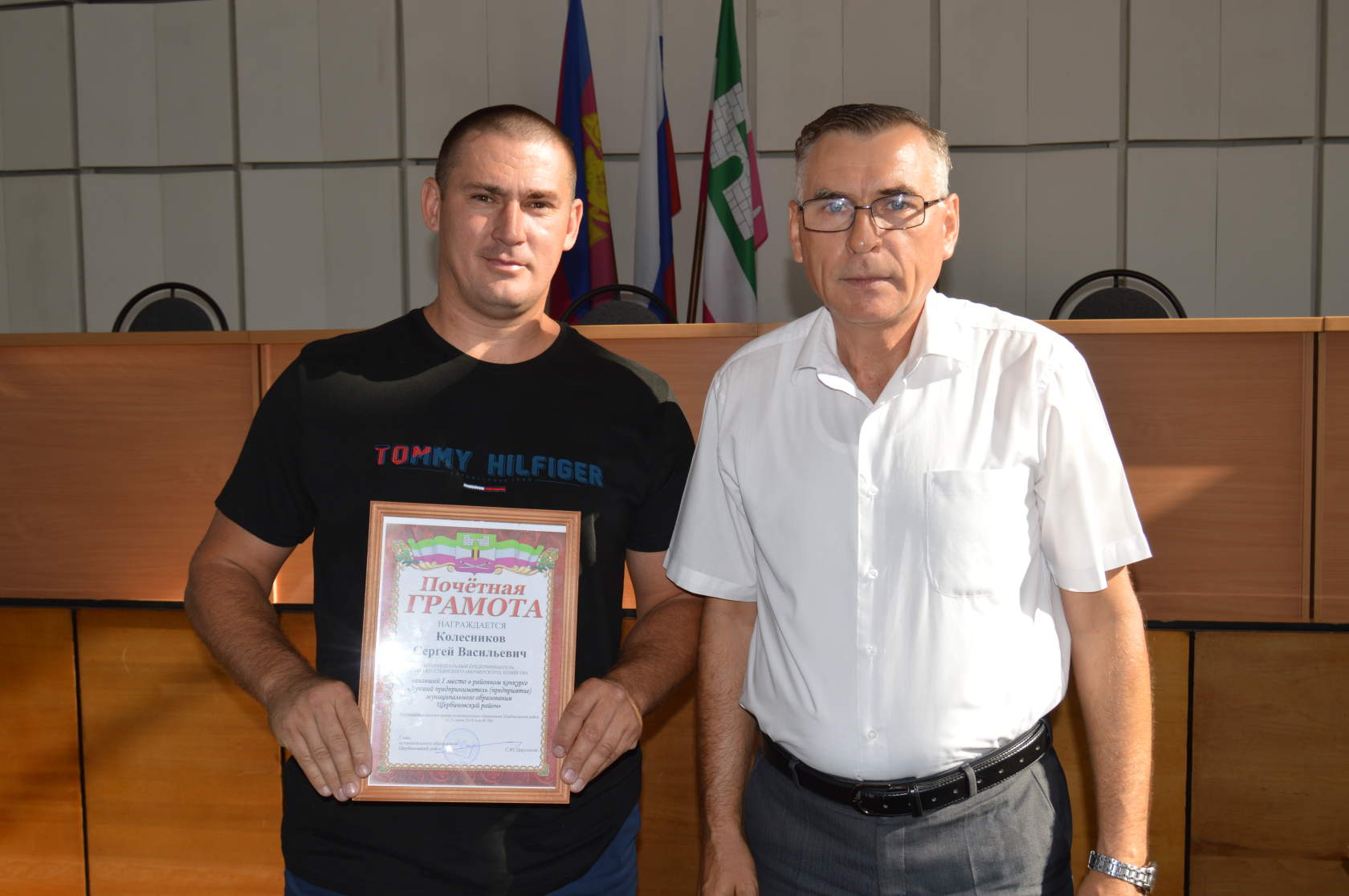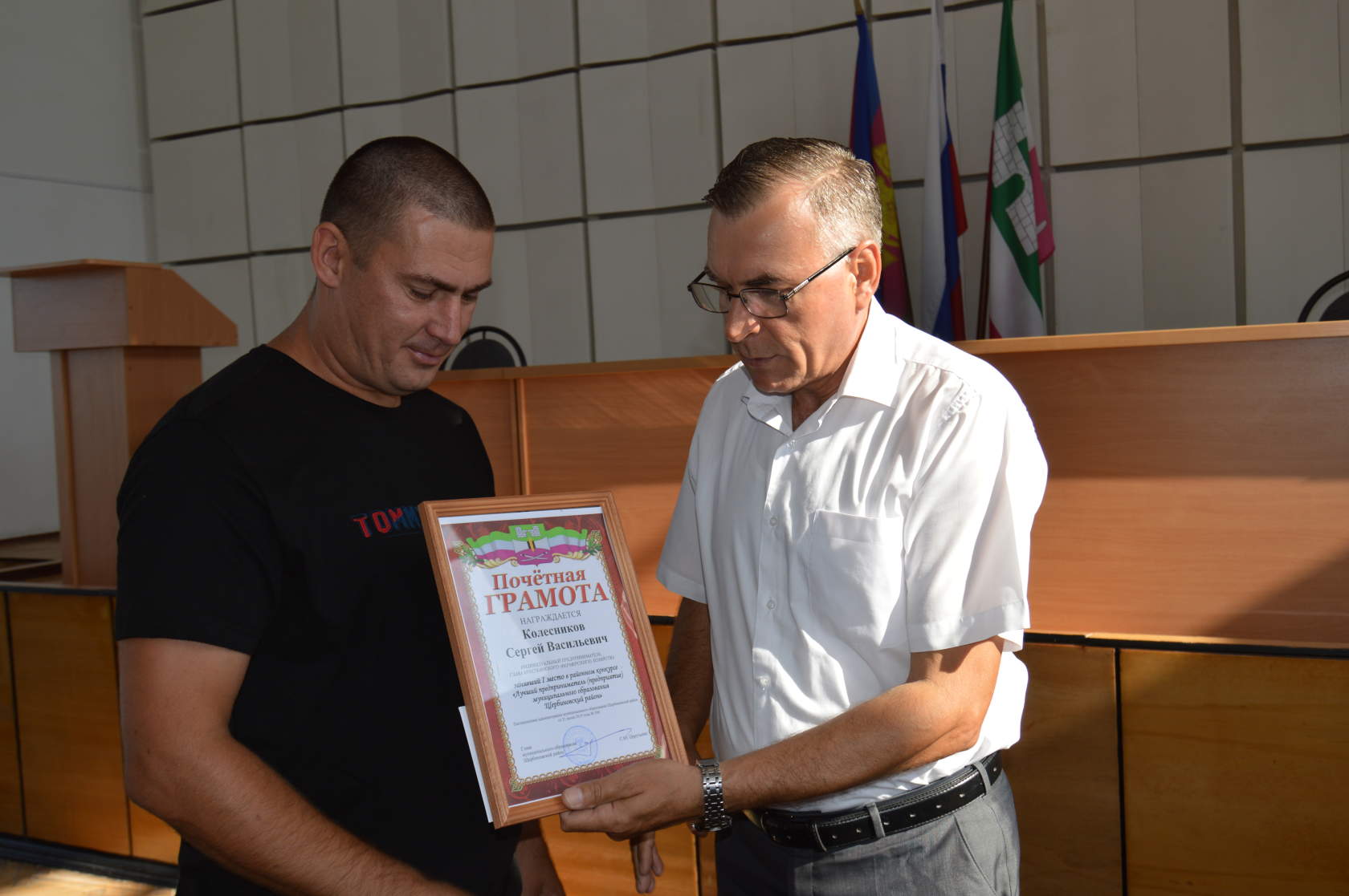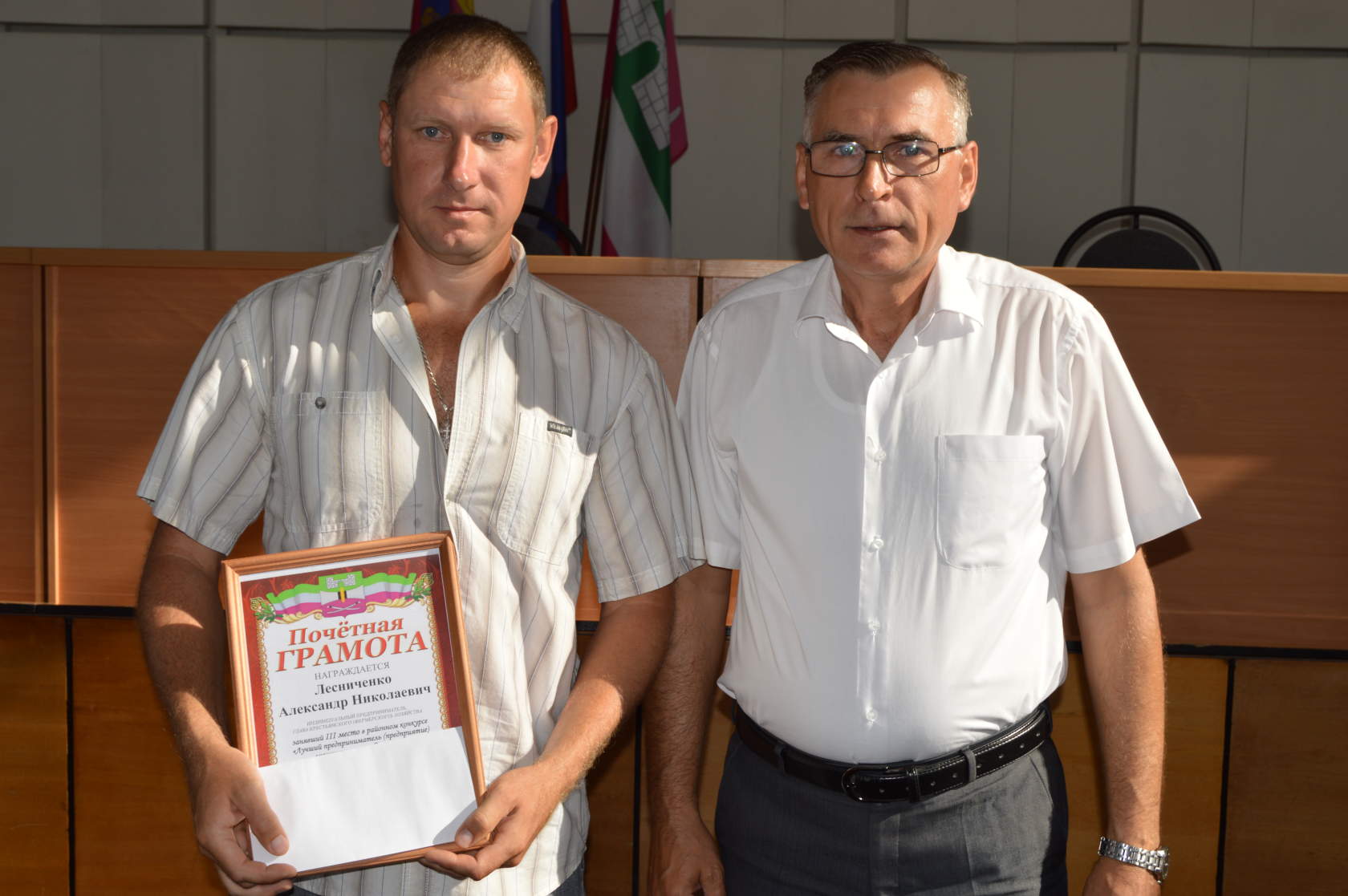 Сегодня глава района Сергей Цирульник на планёрном совещании с руководителями организаций, предприятий и учреждений района наградил победителей районного конкурса «Лучший предприниматель (предприятие) муниципального образования Щербиновский район». Первое место в конкурсе занял индивидуальный предприниматель, глава крестьянского (фермерского) хозяйства Сергей Колесников. Второе место занял индивидуальный предприниматель, глава крестьянского (фермерского) хозяйства – Владимир Стоякин. И почетное третье место - индивидуальный предприниматель Александр Лесниченко. Сергей Юрьевич поздравил победителей, вручил грамоты и денежное поощрение, пожелав победителям успехов в труде.