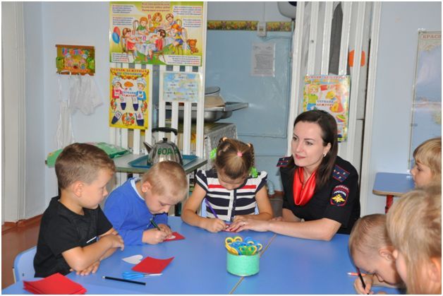 На базе детского сада №10 состоялась встреча инспектора по пропаганде безопасности дорожного движения капитана полиции Батуринец И., при участии специалиста направления по связям со СМИ и общественностью лейтенанта внутренней службы Слепцовой А. с юными воспитанниками детского сада №10.