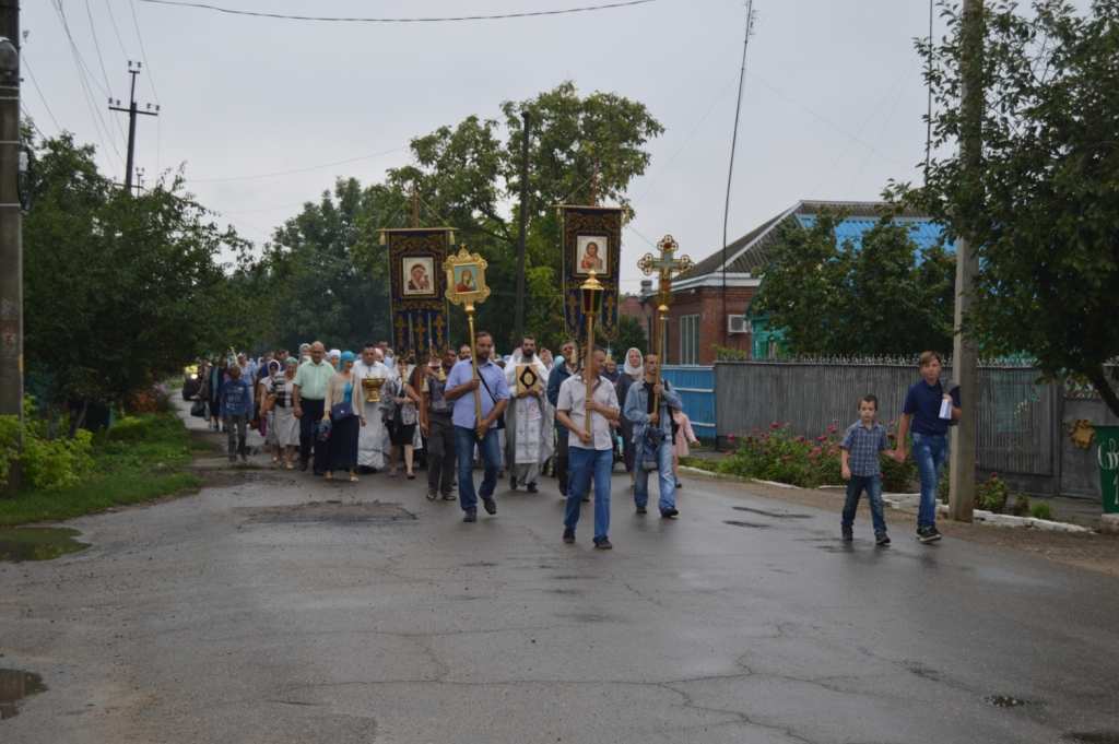 Сегодня, в день Преображения Господа и Спаса нашего Иисуса Христа в храме Покрова пресвятой Богородицы станицы Старощербиновской прошла Божественная литургия и освящение плодов нового урожая. По окончании Божественной литургии состоялся крестный ход к храму Преображения Господня, где прошёл молебен, освящение плодов нового урожая и совместная трапеза.