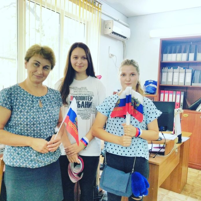 Секретарь комиссии по делам несовершеннолетних администрации Щербиновского района Валентина Гришко тоже поучаствовала в этой акции, ответив верно на вопросы волонтёров. Она показала блестящие знания истории создания триколора, получив в качестве поощрения важный атрибут – флажок РФ.