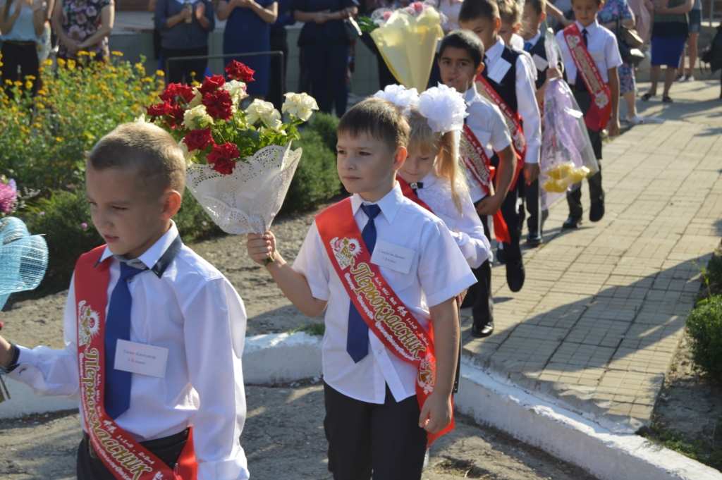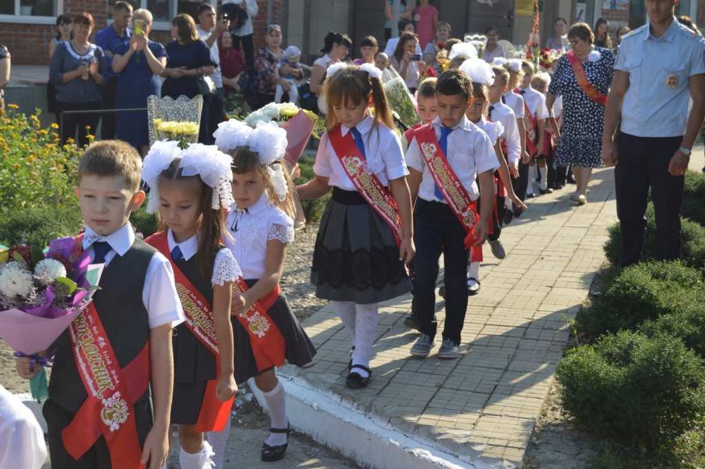 Сегодня глава района Сергей Цирульник вместе с начальником управления образования Ольгой Приставкой поздравили с наступающим учебным годом педагогов и учащихся школы № 5 станицы Старощербиновской .